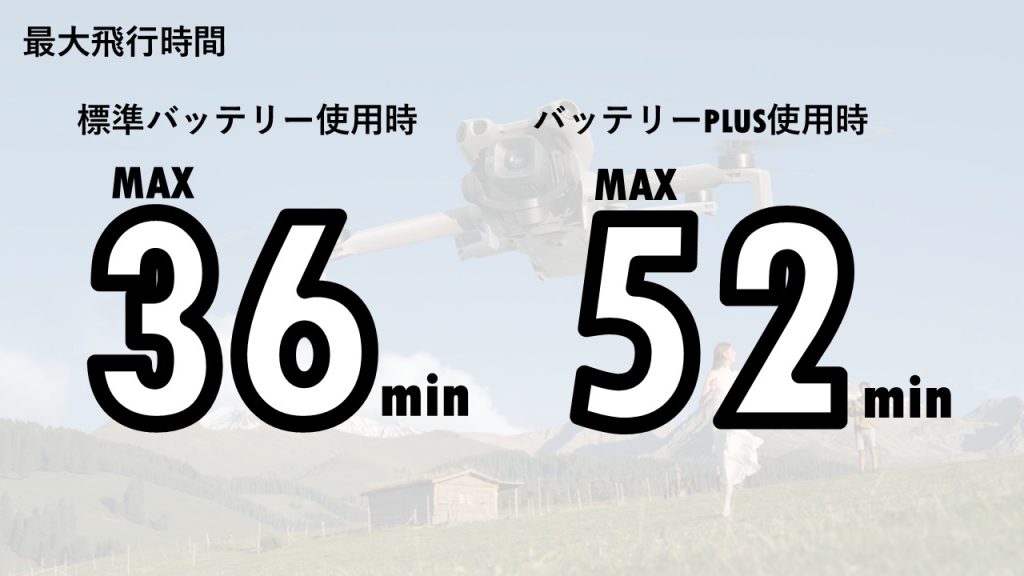 別売りのインテリジェントフライトバッテリーPLUSを購入すれば最大52分と長時間飛行を実現!