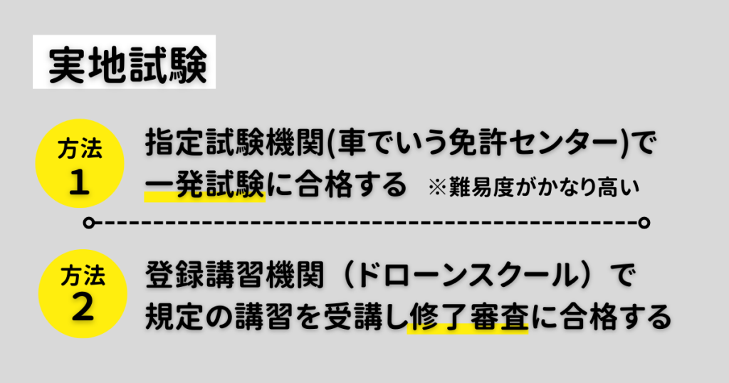 車の免許を取る時に、ほとんどの方は自動車教習所に通い、教習所の卒業検定に合格することで技能試験の免除を受けています。ドローンの場合も同様の仕組みです。