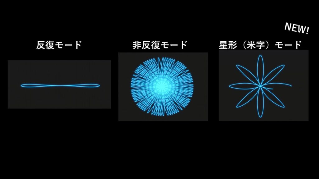 お馴染みの反復モードと非反復モードに加えて、星形(米字)モードが選択可能です。