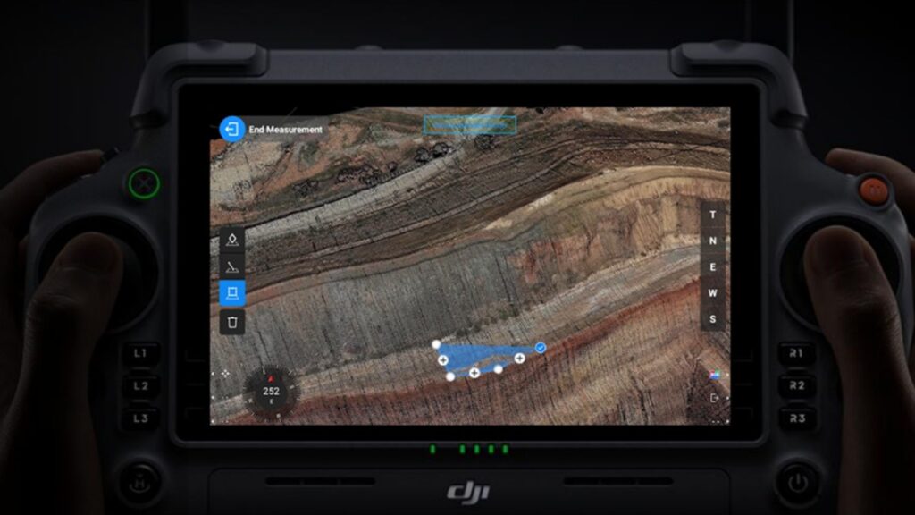 また、送信機上の簡易点群データを使用して、体積や距離など簡易的な計測もできてしまいます。